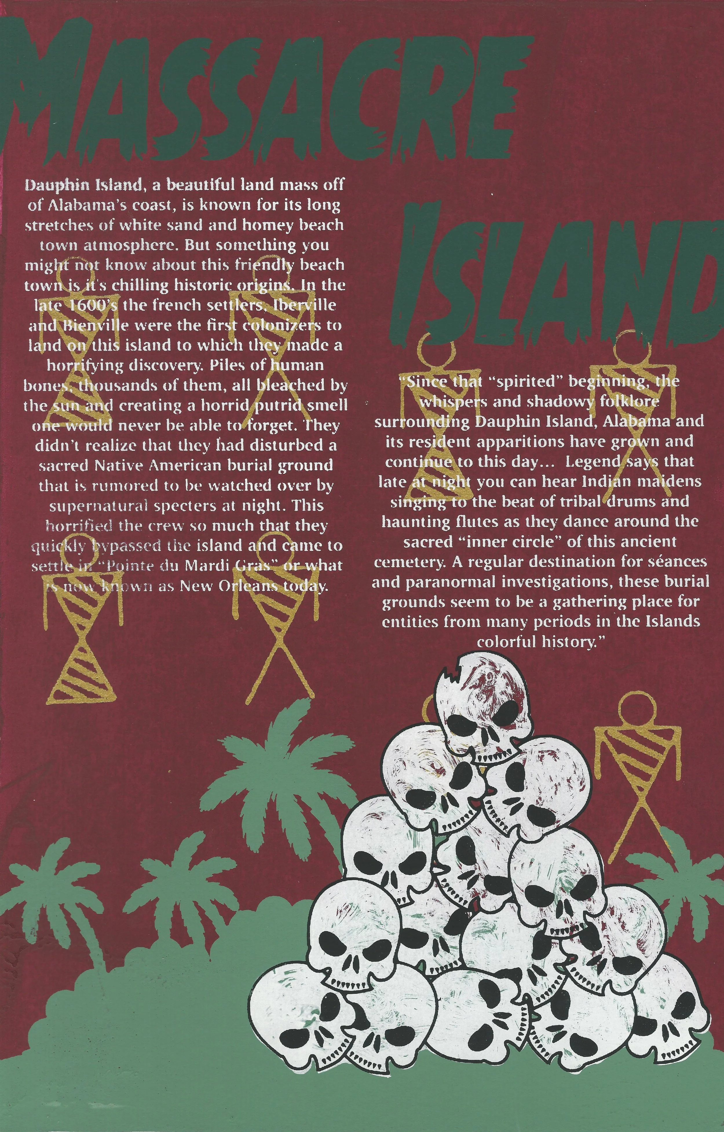 Massacre Island, Screen Print, Pulp History Posters, Photo Emulsion and Digitally Printed Stencils, 11” x 17”, 2019, University of South Alabama
